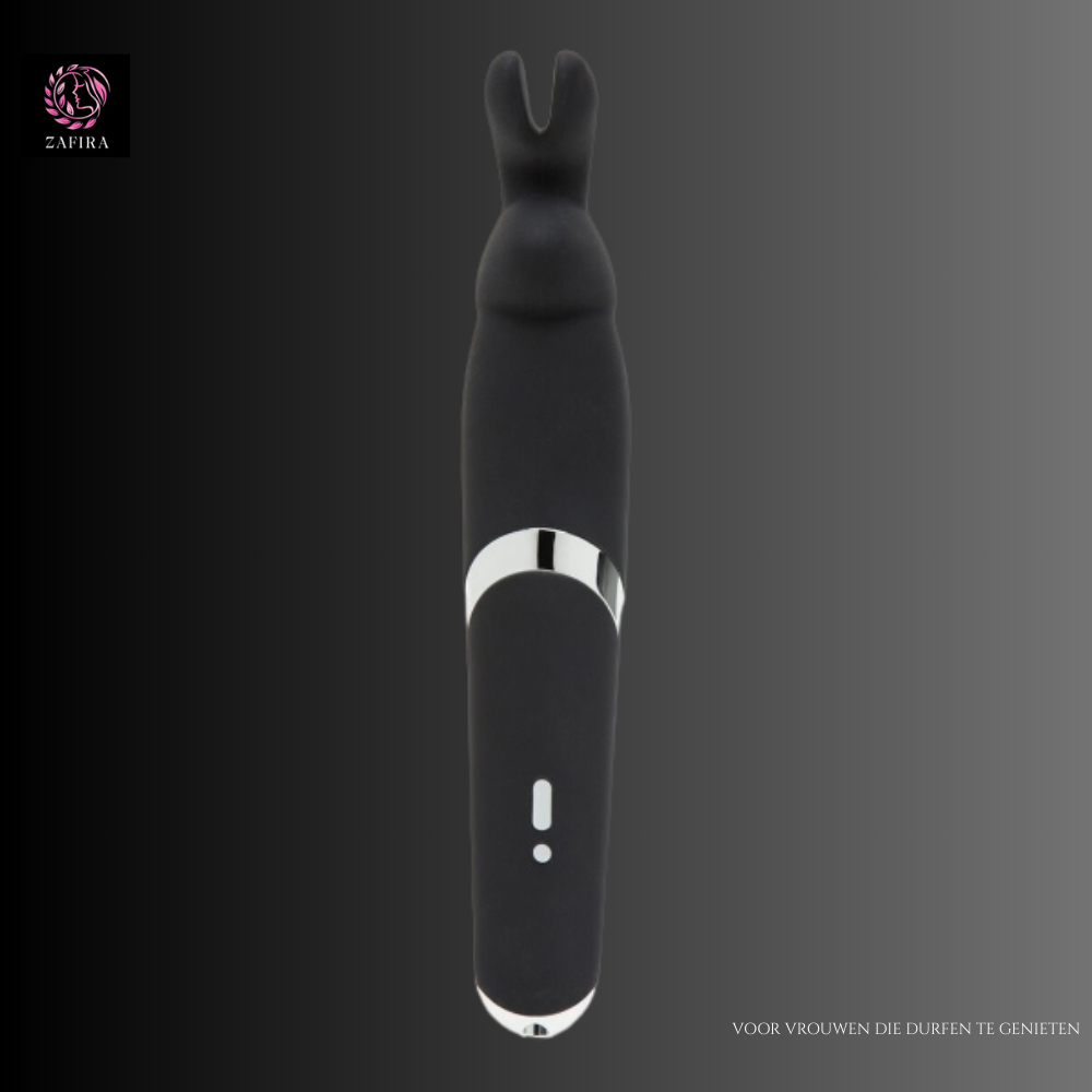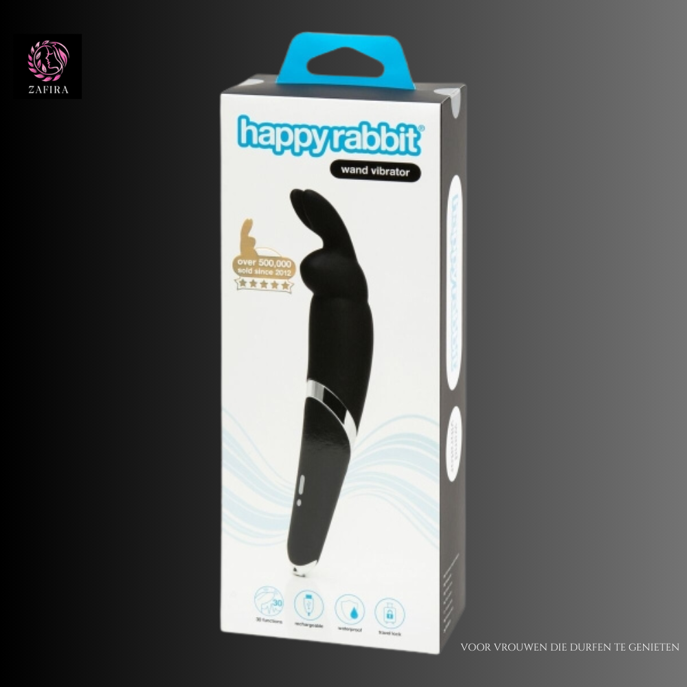 De Happy Rabbit Zwart is een speelse maar serieuze wand vibrator die comfort en krachtige prestaties moeiteloos combineert. De diepe zwarte kleur straalt elegantie uit, terwijl het slanke ontwerp en het fluweelzachte siliconen oppervlak zorgen voor een luxueuze ervaring op de huid.