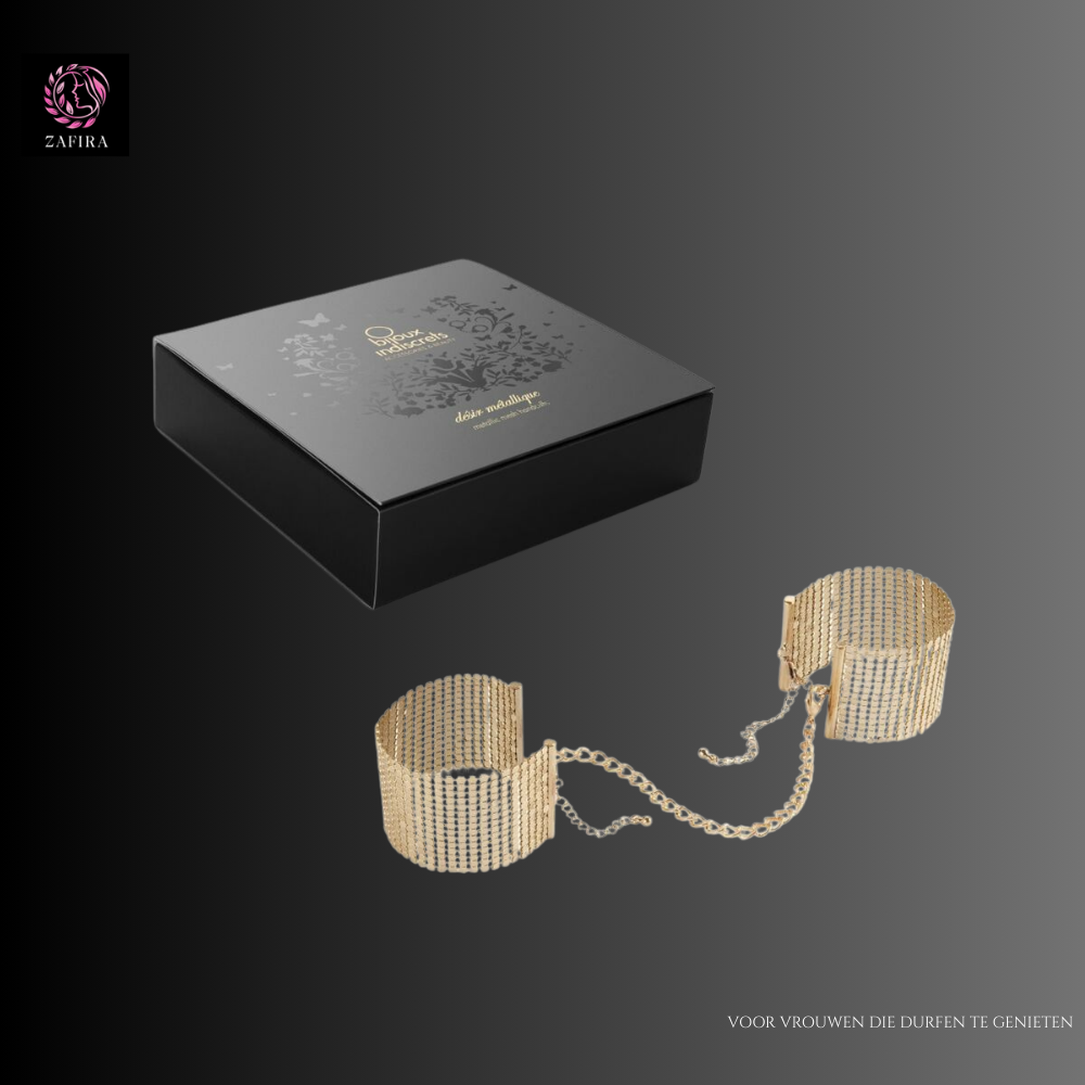 De metalen handboeien combineren stevigheid en elegantie en zijn met hun lengte van 230 mm perfect gevormd voor een comfortabele en krachtige pasvorm. Deze set bestaat uit twee onderdelen en is ideaal voor wie elegantie wil verweven met speelse overgave en dominantie.