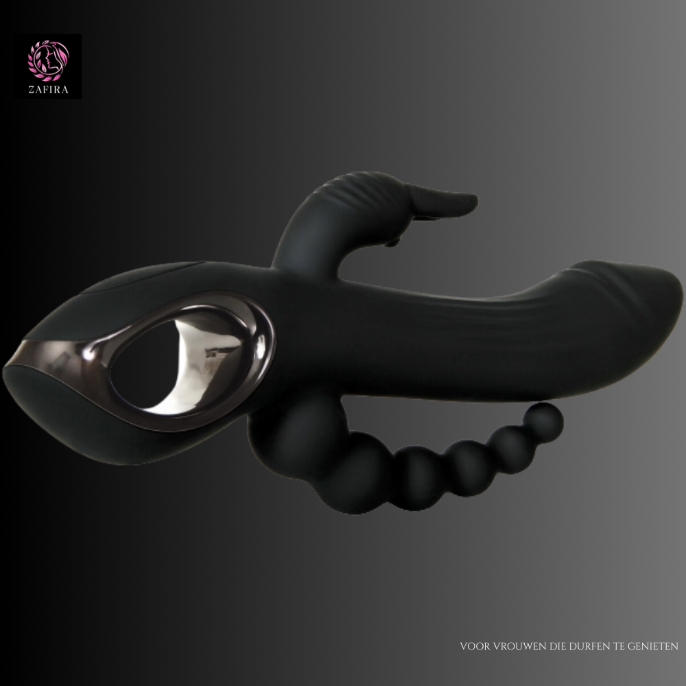 De Evolved Trifecta Zwart is een stijlvolle dubbele vibrator die ultiem genot biedt door dubbele penetratie en diepe stimulatie. Met een diameter van 3,4 cm en een ergonomisch ontwerp zorgt hij voor een perfecte balans tussen intensiteit en comfort.
