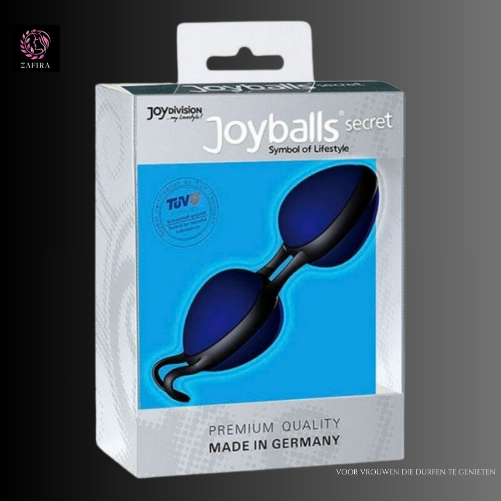 De Joydivision Love Balls in donkerblauw en zwart combineren verfijnd design met doeltreffende stimulatie. Dankzij hun ergonomische vorm en uitgebalanceerde gewicht helpen ze je om je bekkenbodemspieren effectief te versterken, terwijl elke beweging zorgt voor een zachte, opwindende sensatie. Perfect voor wie training en plezier op elegante wijze wil combineren.