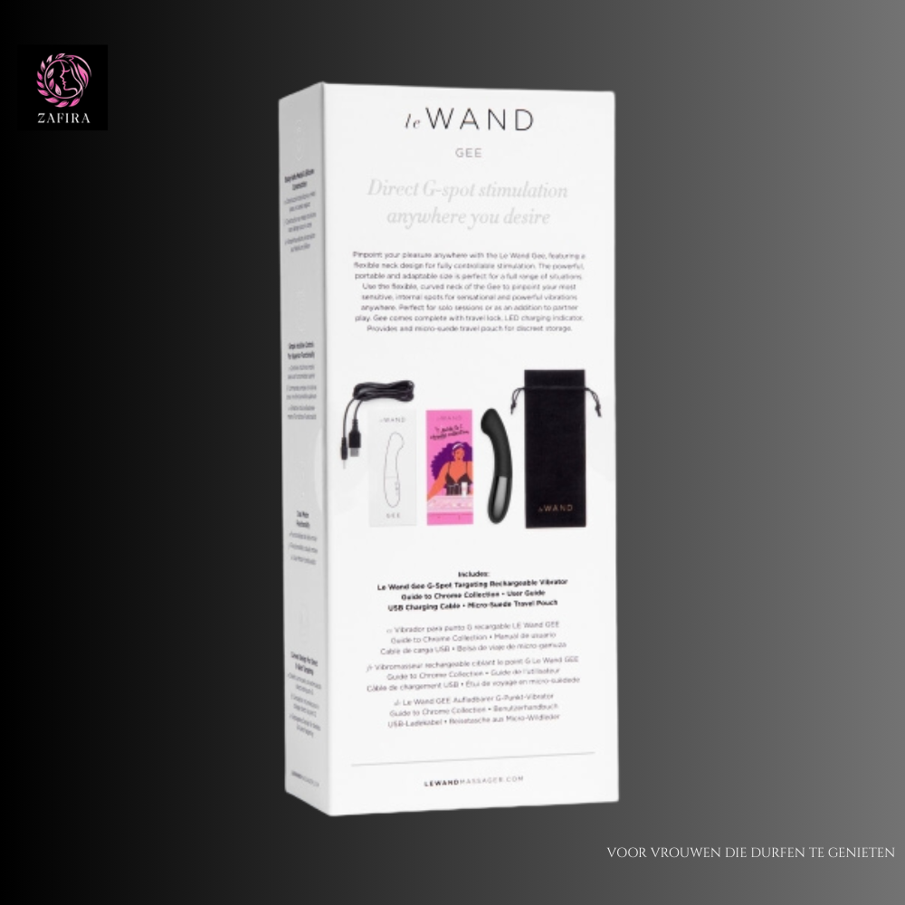 Voor de liefhebber van luxe stimulatie is de Le Wand Zwart een verfijnde G-spot Vibrator die elegantie en pure kwaliteit uitstraalt. Het hoogwaardige siliconen materiaal voelt zijdezacht en comfortabel op de huid, terwijl de diepe zwarte kleur dit speeltje een stijlvolle en premium uitstraling geeft. Met een diameter van circa 3,2 cm en een flexibel ontwerp beweegt hij moeiteloos mee met jouw lichaam, waardoor hij altijd de gevoelige G-spot weet te bereiken.