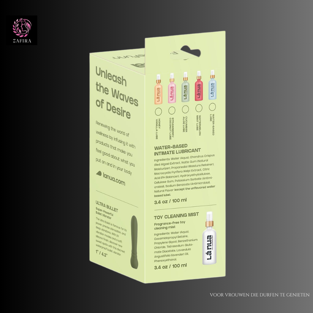 De bundel bevat alles wat je nodig hebt voor een complete ervaring: een bullet vibrator, een Force Recon (100 ml), een reinigingsgel (100 ml) en een stijlvolle reistas. De materialen van siliconen en ABS zorgen voor een zachte aanraking en duurzame kwaliteit, terwijl de herlaadbare functionaliteit garant staat voor ultiem gebruiksgemak.