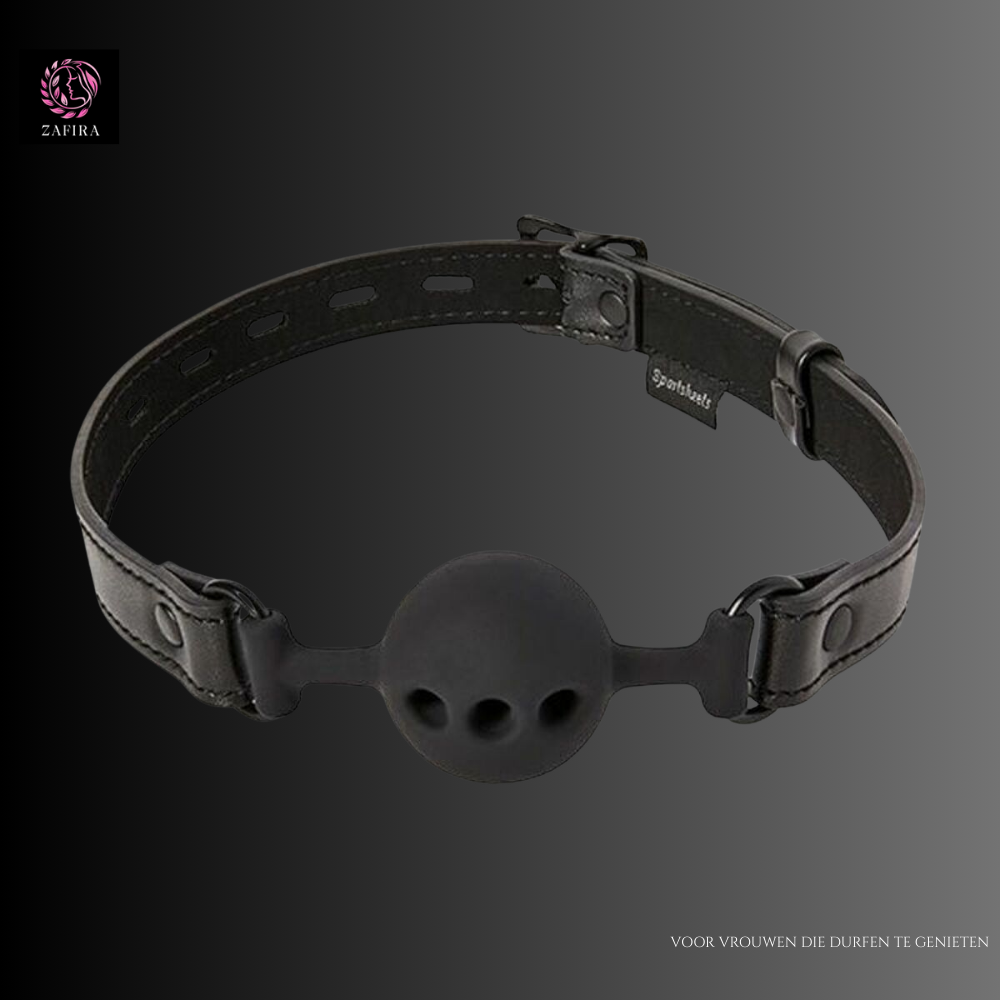 De gag is gemaakt van hoogwaardig polyurethaan leer en voorzien van een gespsluiting voor een stevige en verstelbare pasvorm. Dankzij het ademende ontwerp en de diameter van 3,8 cm biedt dit accessoire comfort én controle in één verfijnde vorm.