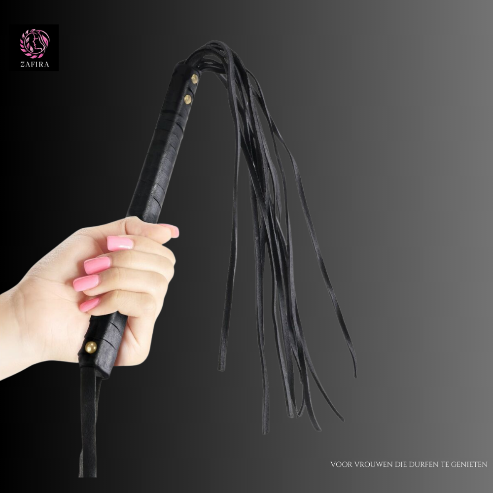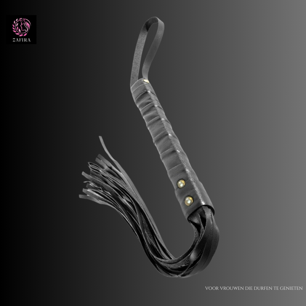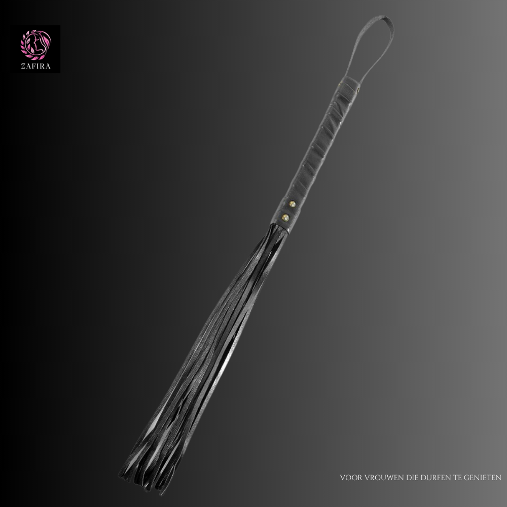 Deze elegante zweep in diepzwart ademt pure kracht en verleiding. Elke beweging prikkelt de zintuigen, bouwt de spanning subtiel op en laat de controle in jouw handen. Perfect voor wie speelt met de grens tussen macht en overgave, en genot graag verfijnd aanstuurt.