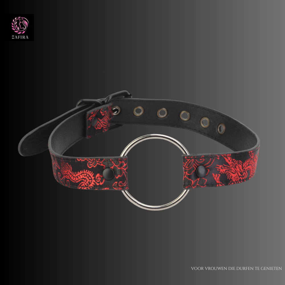 De gag is uitgevoerd in diep rood en vervaardigd uit nylon en polyester, wat zorgt voor een stevige maar comfortabele pasvorm. Met een diameter van 5,7 cm biedt dit accessoire een intense ervaring die elegantie en controle naadloos combineert.