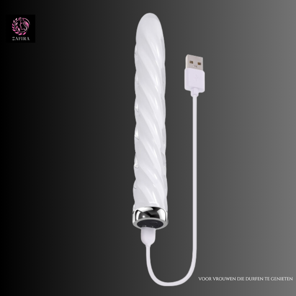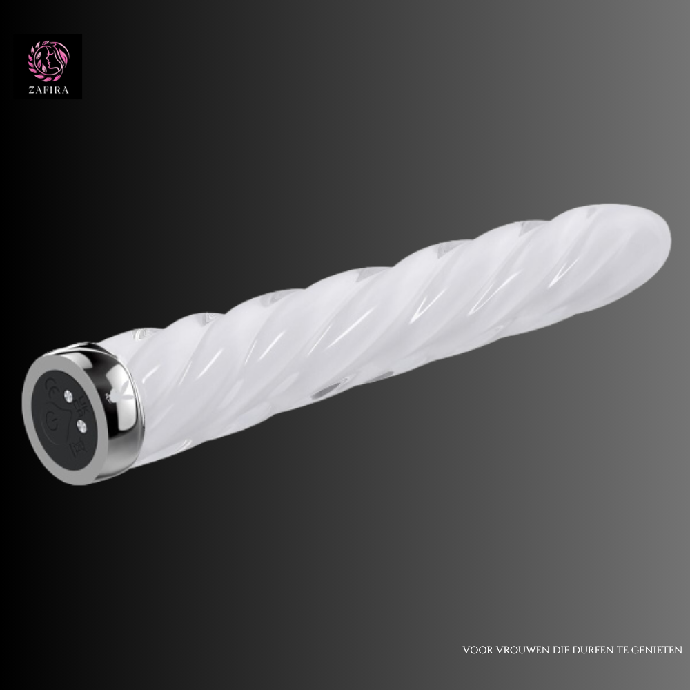 De Playboy Wit is een elegante vibrator met een verrassend design. Dankzij zijn transparante afwerking en slanke vormgeving straalt hij niet alleen stijl uit, maar voelt hij ook heerlijk aan. Met een invoegdiepte van 16,5 cm en een diameter van Ø 2,4 cm biedt hij diepe, precieze stimulatie – perfect voor een intieme verkenning van jouw verlangens.