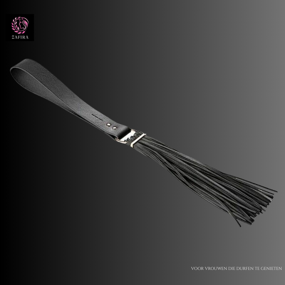Deze stijlvolle zweep in diepzwart straalt pure elegantie en kracht uit. Dankzij het veganistische design en de comfortabele pasvorm in één maat ligt hij soepel in de hand en versterkt hij elke aanraking. Perfect voor wie speelt met de grens tussen macht en overgave, en genot tot kunst verheft.